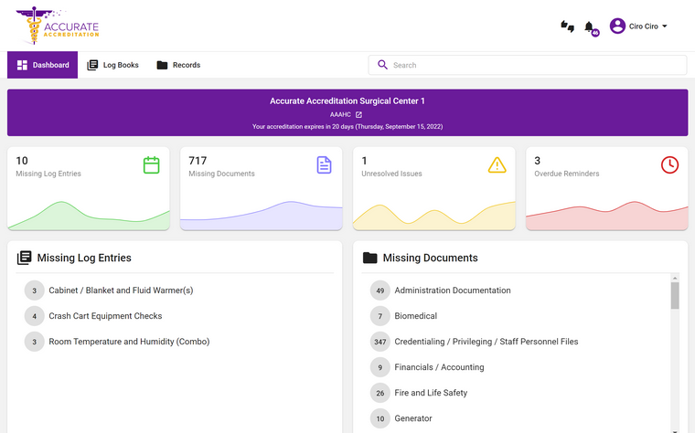 Maintain all the logs you need for your ambulatory surgery center. Options allow you to set your desired cadence, customize your own templates or use our surveyor approved pre-built templates.